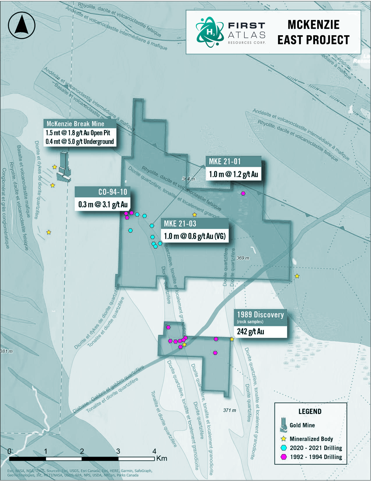 First Atlas currently has a planned drilling program to further test the gold intercepted in historic drilling at the C2-B mineral showing, continue testing the promising geology and gold intercepts of hole MKE-21-03, and drill other untested geophysical targets.